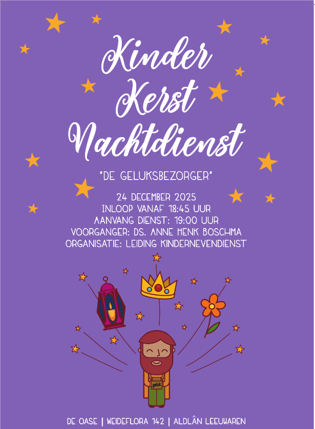 Op 24 december vieren wij de Kinderkerstnachtdienst (aanvang 19:00). Samen met de leiding van de Kindernevendienst heb ik dit voorbereid. De kinderen zullen ook weer volop meedoen in de dienst. En de leiding van de kindernevendienst speelt een Kerstspel. Uiteraard sluiten wij, naar onze traditie, de dienst samen zingend in een kring af en delen wij licht. Het is altijd een bijzondere viering.